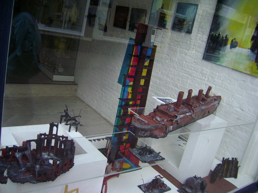 Een aantal objecten gegroepeerd om een toren,de Dreamscraper,het centrum van deze installatie